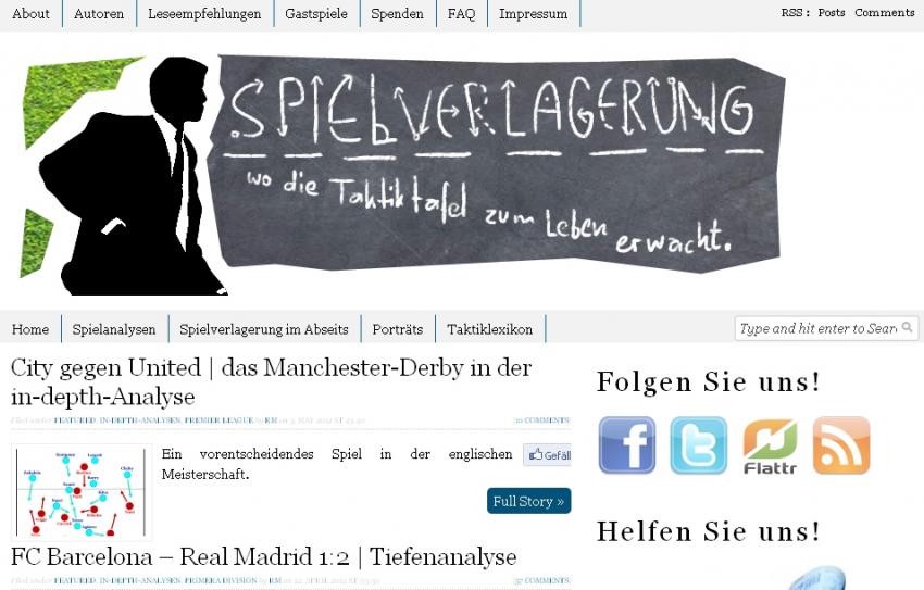 Aus aktuellem Anlass (Grimme-Preis Nominierung, Glückwunsch!), möchte ich hier nochmal auf die meines Erachtens beste Bloggingseite zum Thema Taktikanalysen im Fußball verweisen und zwar auf die Seite Spielverlagerung.de.
