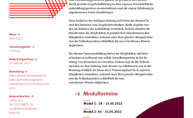 Modul 2: 30. – 31.05.2022 an der Trainerakademie in Köln