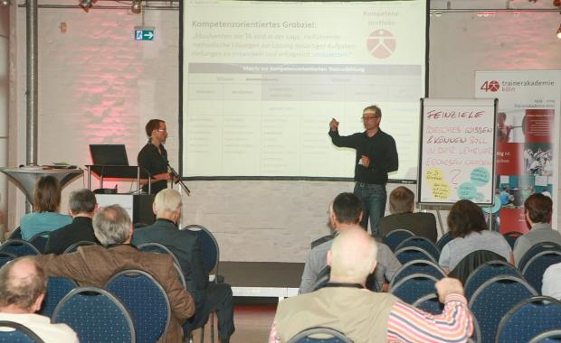 Im ersten Hauptvortrag des Nachmittags blickte Nordmann dann auf 40 Jahre praxis- und kompetenzorientierte Trainerausbildung an der Trainerakademie zurück. Das Thema Kompetenzen im Beruf vertiefte Prof. Dr. John Erpenbeck von der Steinbeis Universität Herrenberg/Berlin im zweiten Hauptvortrag mit dem Thema "Kompetenz im Beruf - Ableitungen für Ausbildung und Studium".