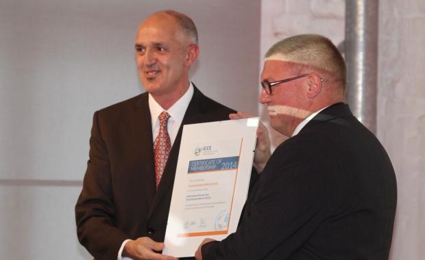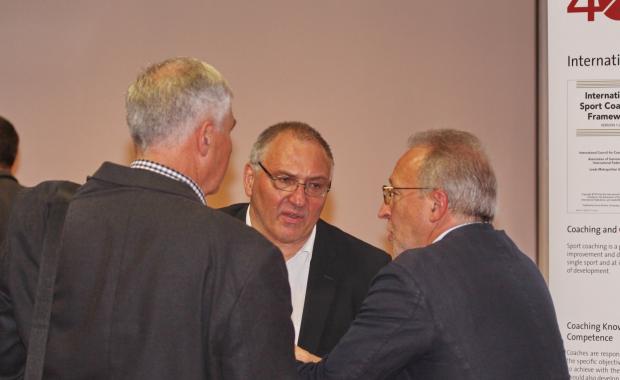 Dr. Ladislav Petrovic, Secretary General des International Council for Coaching Excellence (ICCE), hob die Rolle der Trainerakademie im ICCE hervor und überreichte dem Direktor, der Trainerakademie, Prof. Dr. Lutz Nordmann, ein Gründungszertifikat des ICCE.