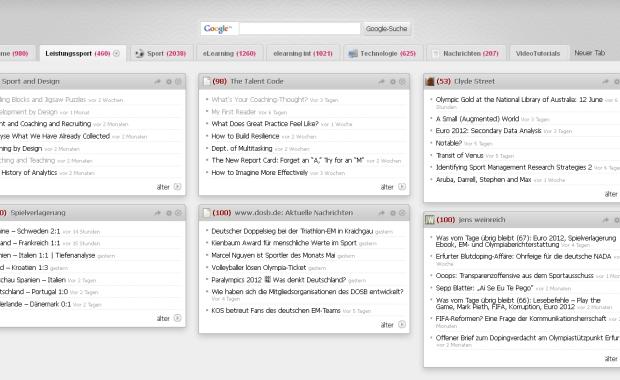 Meiner Meinung nach ein super Tool um Informationen aus dem WWW zu organisieren und zu kanalisieren. Der Nutzer kann RSS-Feeds und andere dynamische Inhalte aus dem Internet auf einer oder mehreren personalisierten Seiten zusammenfassen und per Drag & Drop in beliebige Kategorien einordnen („dashboard personalization“). Dadurch erstellt man quasi eine persönliche Startseite ins Internet. Man muss sich natürlich einmal die Mühe machen, alle Quellen und Seiten, über die man regelmässig Informationen beziehen möchte, zu organisieren und für sich zu strukturieren.