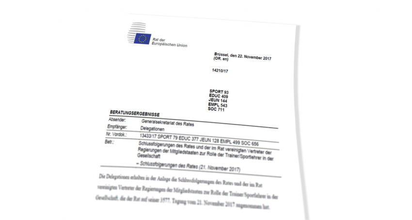 Am 21.11.2017 tagte der Rat der EU "Bildung, Jugend, Kultur und Sport" in Brüssel. Dabei berieten die Ministerinnen und Minister über die größten Herausforderungen für den Sport im 21. Jahrhundert. Sie sprachen darüber, wie die Zusammenarbeit zwischen den nationalen Regierungen und mit Sportverbänden verbessert werden kann, um Fragen wie Integrität, Governance und den gesellschaftlichen Beitrag des Sports wirksamer angehen zu können.