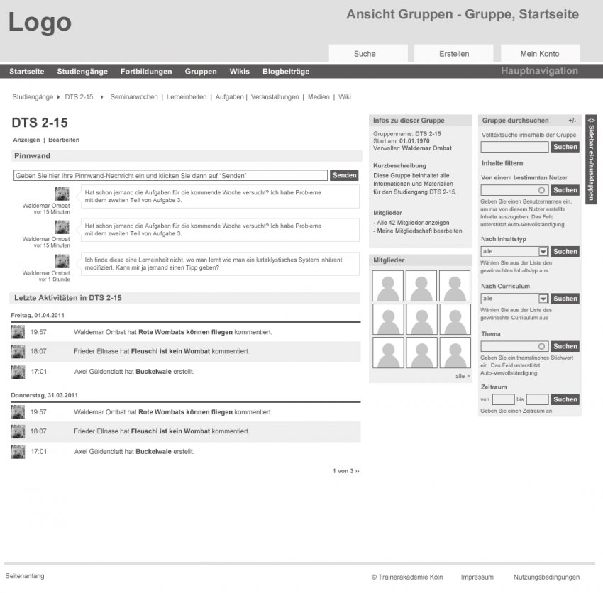 Bei der Erneuerung der Seite wurde vor allem Wert auf eine Restrukturierung der Hauptstartseite und der Startseiten der einzelnen Studiengänge/Fortbildungen und Gruppen gelegt. Selbstverständlich wurden alle bereits vorhandenen Daten mit ins neue System übernommen.