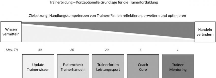 Die Trainerakademie Köln des DOSB hat ihr Fortbildungskonzept überarbeitet. Das neue Konzept zielt akzentuiert auf sportartübergreifende und sportartverbindende Angebote ab und ist zunächst in besonderer Weise auf die Zielgruppe der bundesfinanzierten Trainerinnen und Trainer ausgerichtet, bewusst aber als offenes, dynamisches Konzept angelegt.