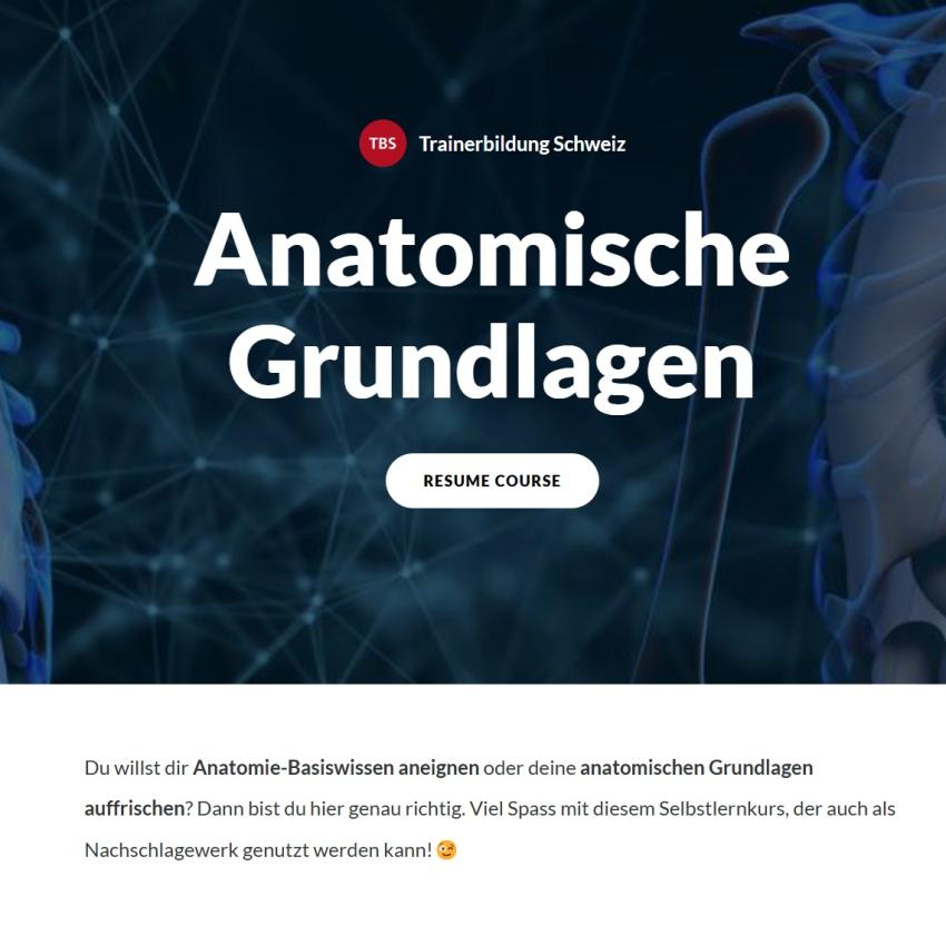 Die Trainerbildung Schweiz hat einen frei zugänglichen Selbstlernkurs "Anatomie-Basiswissen" erstellt.