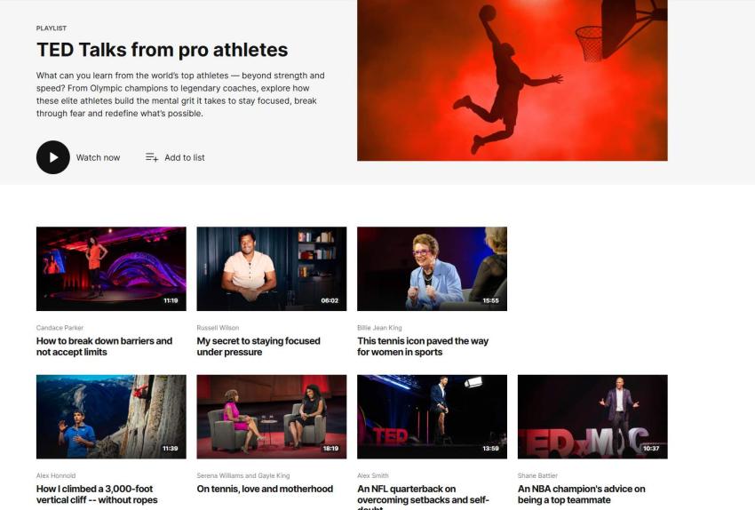 Was können wir von den besten Athletinnen und Athleten der Welt lernen – jenseits von Kraft und Schnelligkeit? Von Olympiasiegern bis hin zu legendären Trainern: In diesen TED Talks sprechen professionelle und sehr erfolgreiche Sportler aus den unterschiedlichsten Sportarten darüber, wie sie ihre mentale Stärke entwickeln, um fokussiert zu bleiben, Ängste zu überwinden und das scheinbar Unmögliche neu zu definieren.