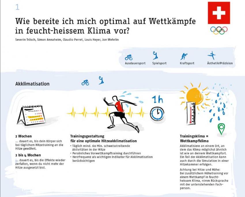 Darin geht es z.B. um die klimatischen Bedingungen, die die Athlet/in bei den Olympischen Spielen in Tokyo erwarten und um Massnahmen, um bei Reisen die Folgen von Jetlag zu minimieren.