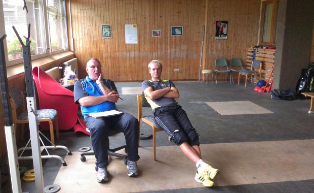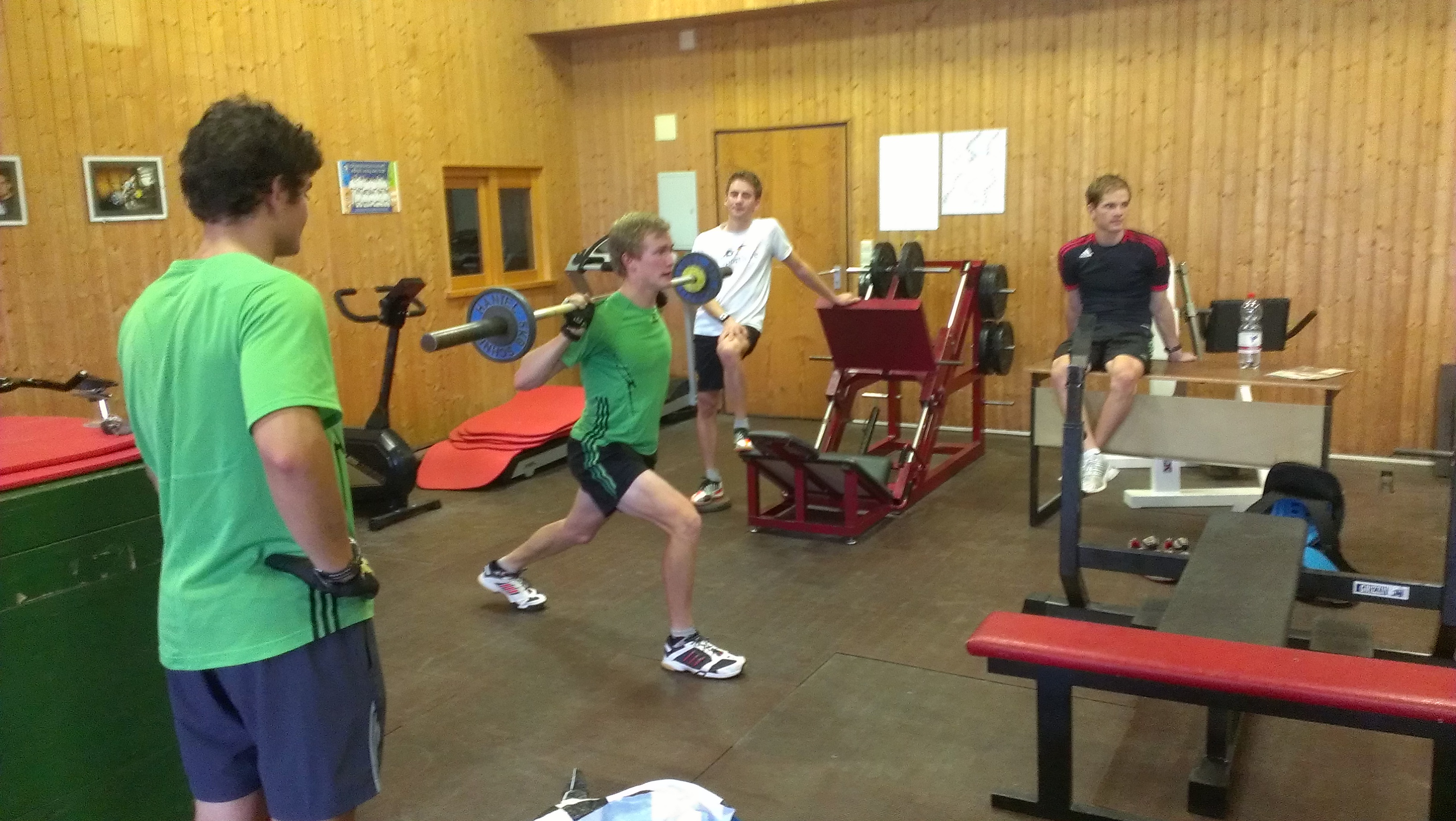 Heute gibt es nun einen kleinen Zwischenbericht aus dem Training. Unsere Krafttrainingsplanung befindet sich bereits in der 36. KW und die wichtigen Kraftgrundlagen sind in mittlerweile über 20 Trainingswochen gelegt worden. Neben einer Eingewöhnungs- und Lernphase wurde ein Hauptaugenmerk auf das Volumen (Maximalkraftentwicklung ohne vollständige Ausbelastung in den Intensitäten) und die Bewegungsqualität in den komplexen Langhantelübungen fokussiert. Hier wurden unterschiedliche Erfahrungen gesammelt, was bei manchen Sportlern eine Nachsteuerung in der Belastungsgestaltung nach sich zog. Die Hebetechniken im Reißen zum Beispiel brauchten erfahrungsgemäß etwas länger bis man stabile Bewegungsabläufe erkennen und somit eine Progressionen realisieren konnte. Eine sehr gute Entwicklung zeigten die Trainingsübungen Kreuzheben und Kniebeugen als Basisübungen für die Entwicklung der Beinkraft. Eine Entlastung des Gesamtumfangs, im Anschluss an die Hypertrophie, zeigte ebenfalls positive Wirkung im Skiroller Training. Ein weiterer Baustein für eine kooperative Zusammenarbeit zwischen der Trainingsgruppe und den Krafttrainern war der in der 36. KW durchgeführte Leistungstest im Trainingslager auf dem Herzogenhorn. Dieses bereits dritte Treffen mit der Trainingsgruppe zeigte uns einerseits mit wie viel Aufwand dieses Projekt betrieben wird und andererseits wie notwendig der ständige Kontakt mit den zu betreuenden Sportlern ist. Die gesamte Gruppe wurde neben der männlichen und weiblichen Differenzierung auf Grundlage von Intensitätsfenster in die Bereiche gute-, mittlere-, und schlechte Kraftwerte eingeordnet.Wir haben insgesamt vier Übungen ketegorisiert und für den nächsten Planungsabschnitt folgende Festlegungen getroffe: