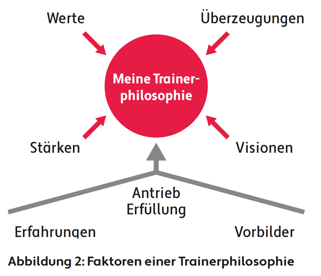 Die Trainerphilosophie spielt hierbei eine übergeordnete Rolle, da sie das Verhalten und Handeln des Trainers bei allen zu lösenden Anforderungen, bewusst oder unbewusst, beeinflusst.